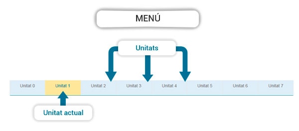- Funcionalitat comuna de contingut: se situa en la part inferior dreta de la capçalera, i comprèn el glossari, bibliografia, cercador... totes estes opcions, comunes al contingut de tota l'àrea de professors.