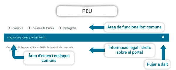 És l'àrea que està en la part inferior del portal on es mostra la informació i avisos legals.