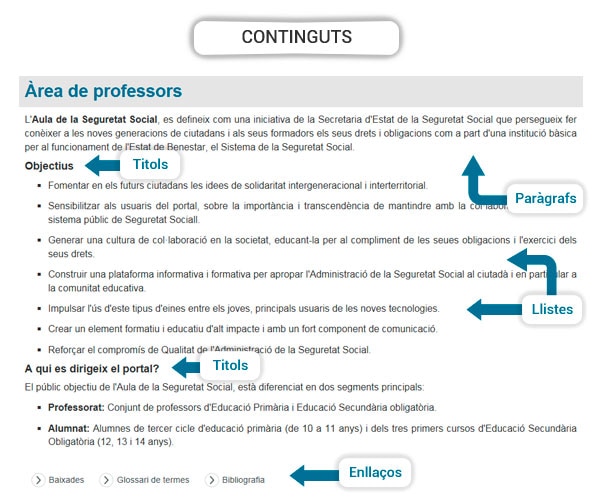 És el lloc on es carrega el vertader contingut del portal, dins d'este es mostra una gran varietat de continguts, paràgrafs, imatges, taules, llistes, enllaços...